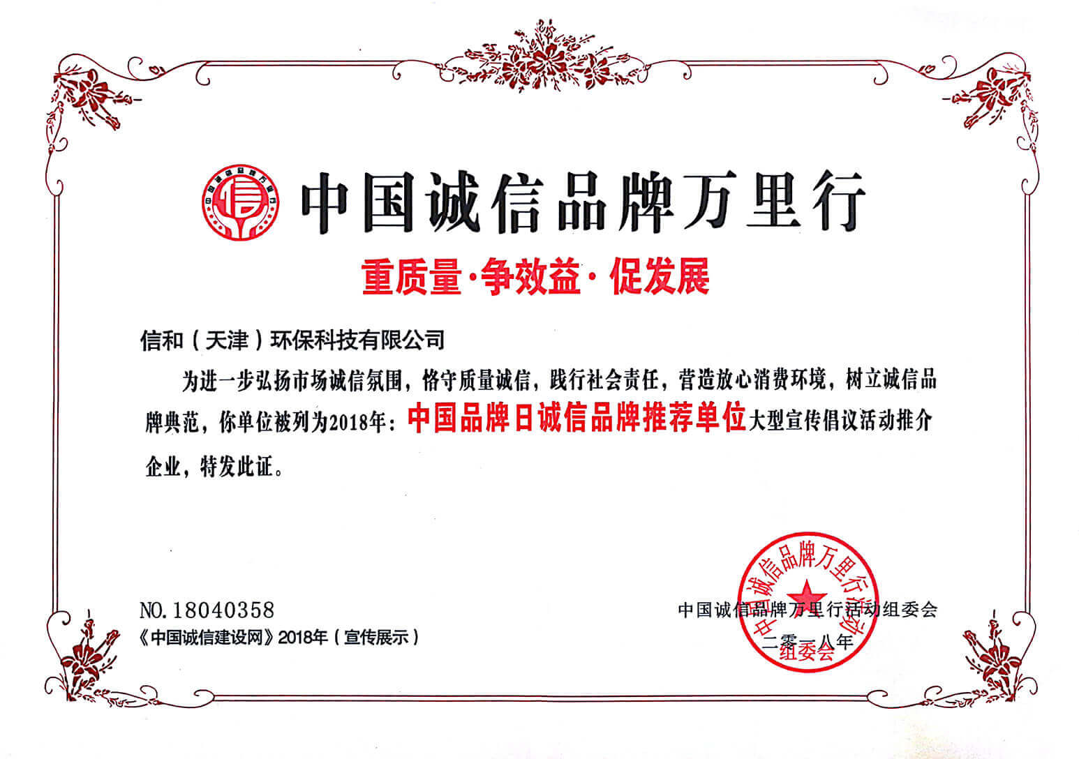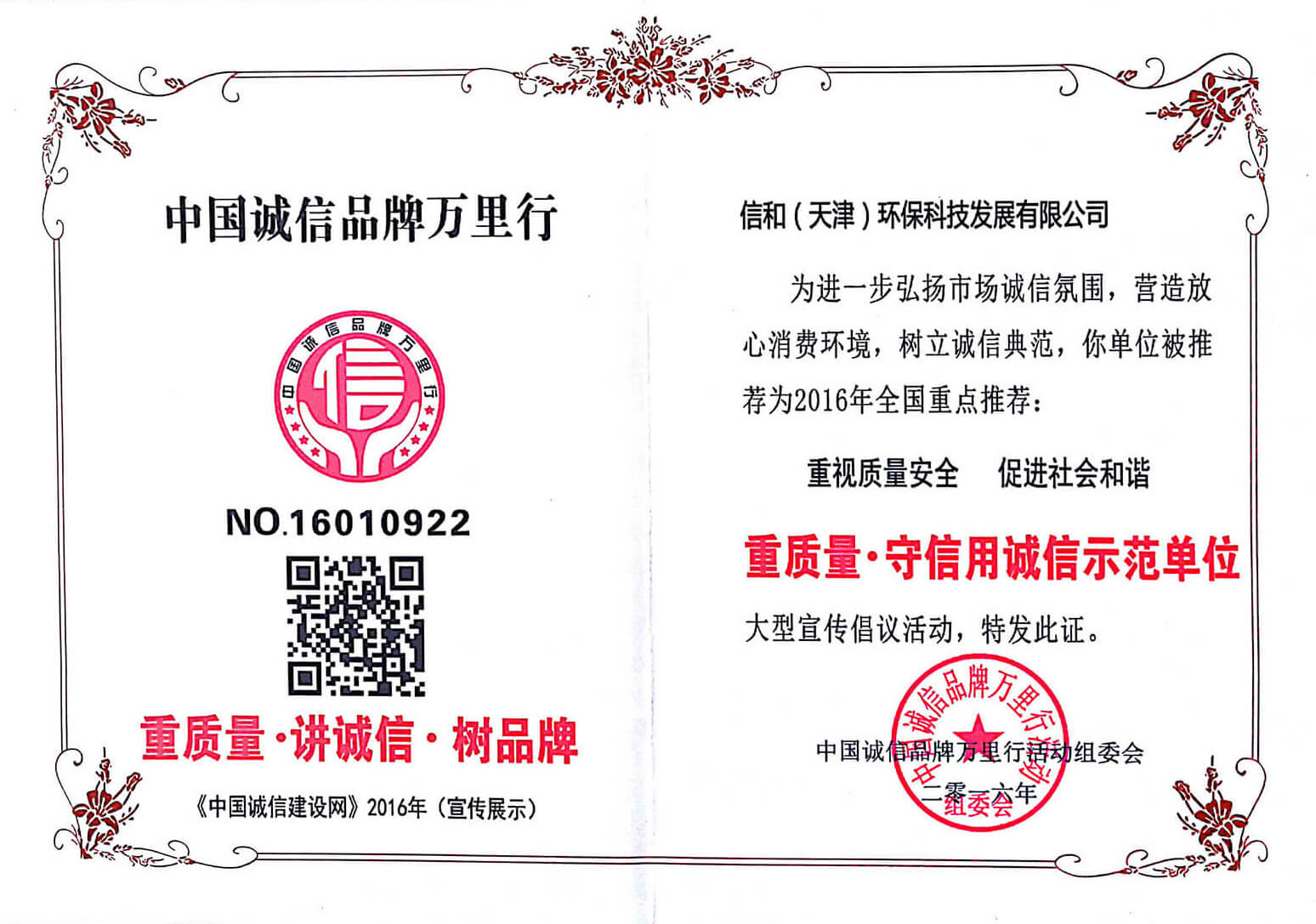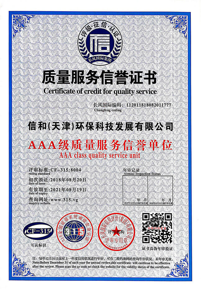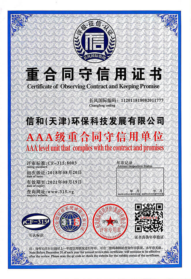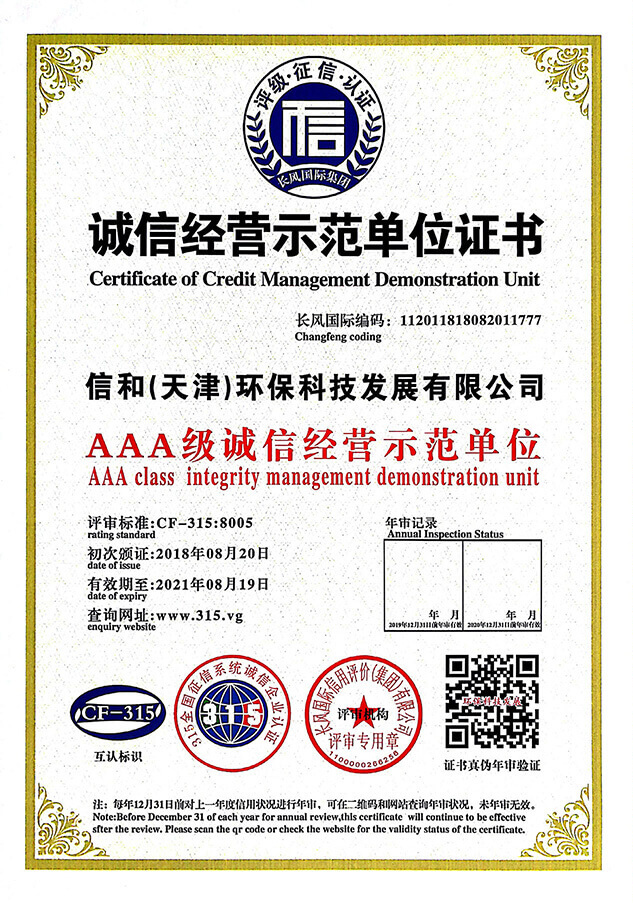 “質量就是生命”。信和重質量、守信用,被中國誠信品牌萬里行推薦“誠信示范單位”、“AAA資信等級”、“AAA級誠信經營示范單位”、“誠信經理人榮譽證書”、“誠信企業家榮譽證書”、“中國產品質量放心達標企業”、“誠信品牌聯盟會員單位”、“中國質量誠信AAA級品牌企業”、“中國百強優(yōu)秀企業”、“節(jié)能環(huán)保推廣產品”、“全國科技創(chuàng)新企業”等榮譽稱號。